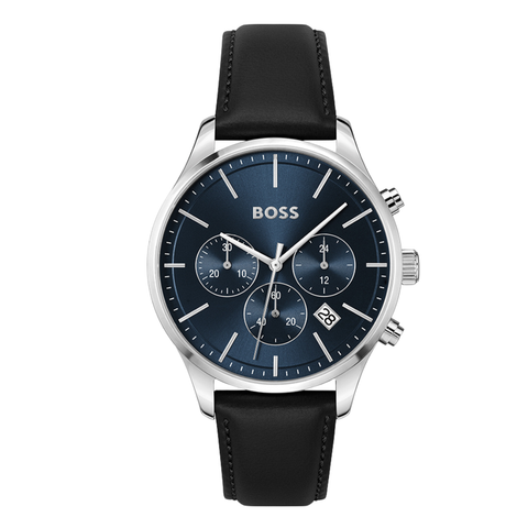 Hugo Boss Black Leather Strap Blue Dial Chronograph Quartz Watch for Gents - 1514156
