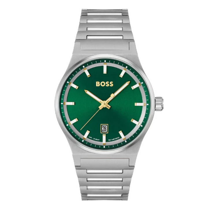 Hugo Boss Candor Silver Stainless Steel Green Dial Quartz Watch for Gents - Boss 1514079