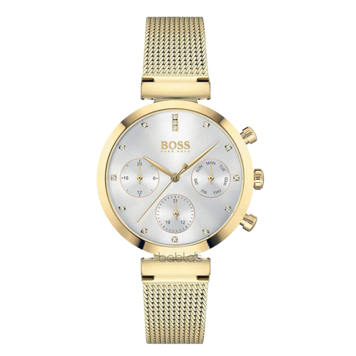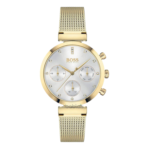 HUGO BOSS Flawless Gold Mesh Bracelet Silver Dial Chronograph Quartz Watch for Ladies - 1502552