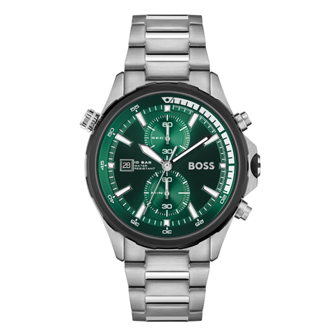 HUGO BOSS Globetrotter Silver Stainless Steel Green Dial Chronograph Quartz Watch for Gents - 1513930