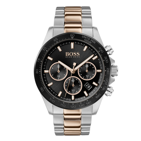HUGO BOSS Hero Two-Tone Stainless Steel Black Dial Chronograph Quartz Watch for Gents - 1513757