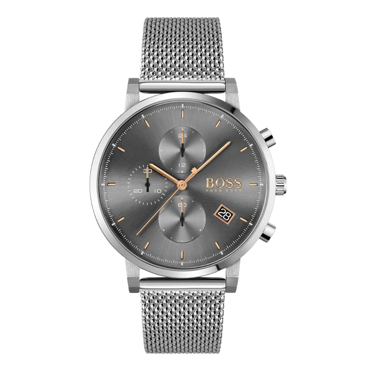 Add to WishlistHUGO BOSS Integrity Silver Mesh Bracelet Black Dial Chronograph Quartz Watch for Gents - 1513807