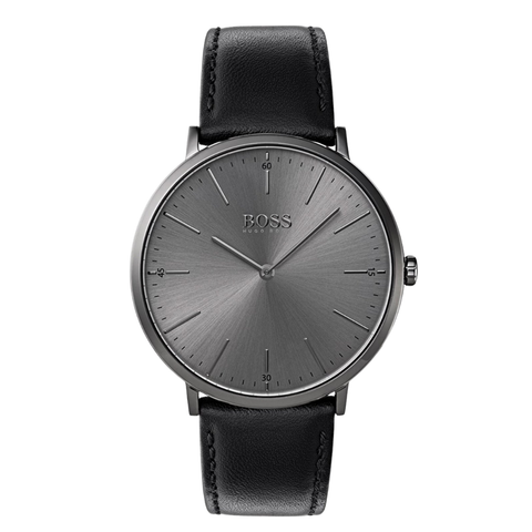 HUGO BOSS Modern Black Leather Strap Black Dial Quartz Watch for Gents - 1513540