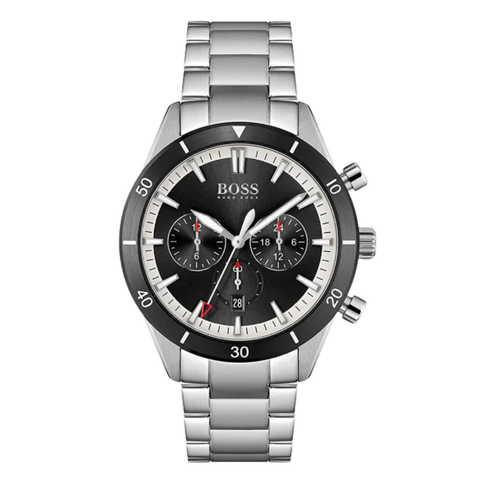 HUGO BOSS Santiago Silver Stainless Steel Black Dial Chronograph Quartz Watch for Gents - 1513862
