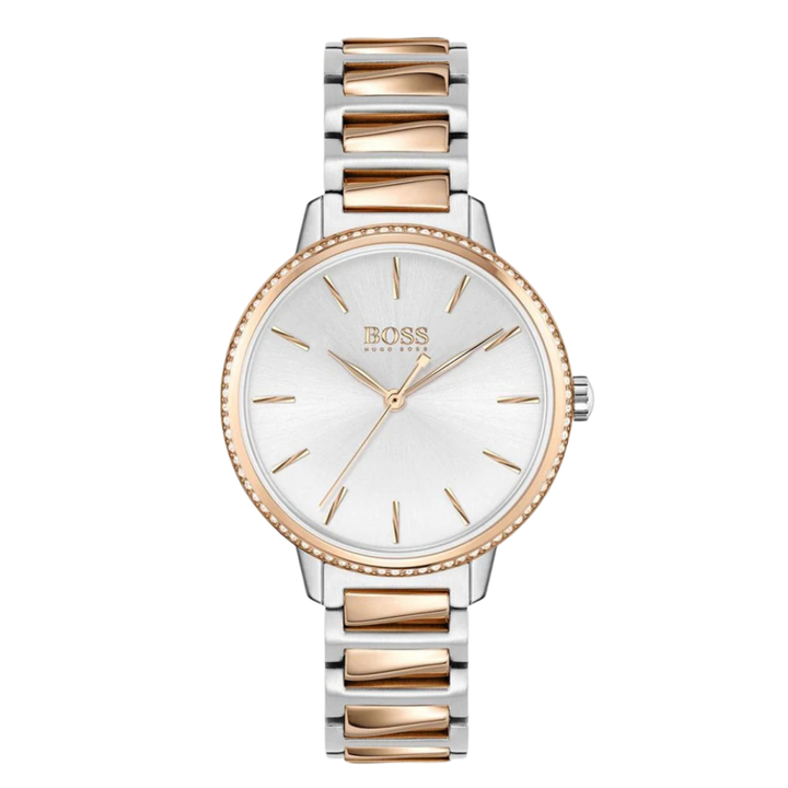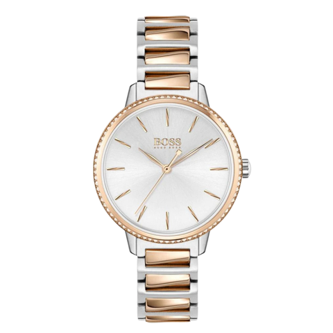 HUGO BOSS Signature Two-Tone Stainless Steel Silver Dial Quartz Watch for Ladies - 1502567