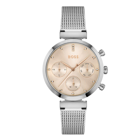 Add to WishlistHugo Boss Silver Mesh Bracelet Pink Dial Chronograph Quartz Watch for Ladies - Hugo Boss 1502625