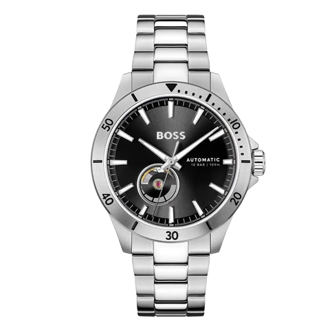 Hugo Boss Silver Stainless Steel Black Dial Automatic Watch for Gents - Hugo Boss 1514202