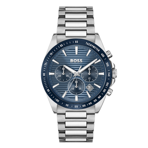 Hugo Boss Silver Stainless Steel Blue Dial Chronograph Quartz Watch for Gents - Hugo Boss 1514240