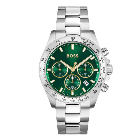 Hugo Boss Silver Stainless Steel Green Dial Chronograph Quartz Watch for Gents - Hugo Boss 1514217