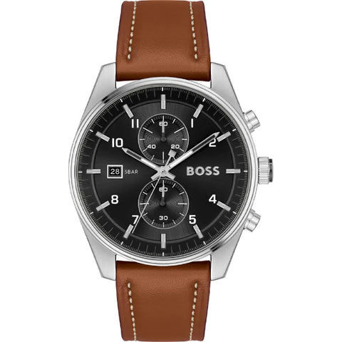 Add to WishlistHugo Boss Skytraveller Brown Leather Strap Black Dial Chronograph Quartz Watch for Gents - Boss 1514161