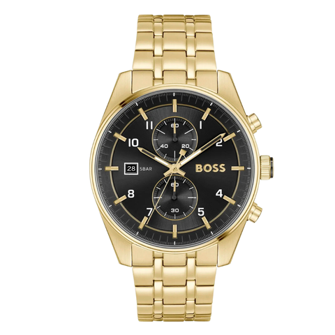 Add to WishlistHugo Boss Skytraveller Gold Stainless Steel Black Dial Chronograph Quartz Watch for Gents - Boss 1514152
