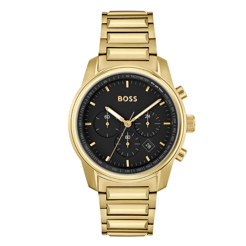 HUGO BOSS Trace Gold Stainless Steel Black Dial Chronograph Quartz Watch for Gents - 1514006
