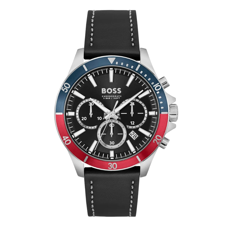 Hugo Boss Troper Black Leather Strap Black Dial Chronograph Quartz Watch for Gents - 1514099