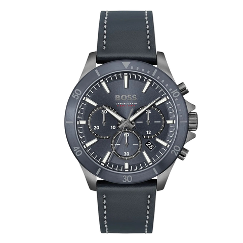 Hugo Boss Troper Blue Leather Strap Blue Dial Chronograph Quartz Watch for Gents - 1514056