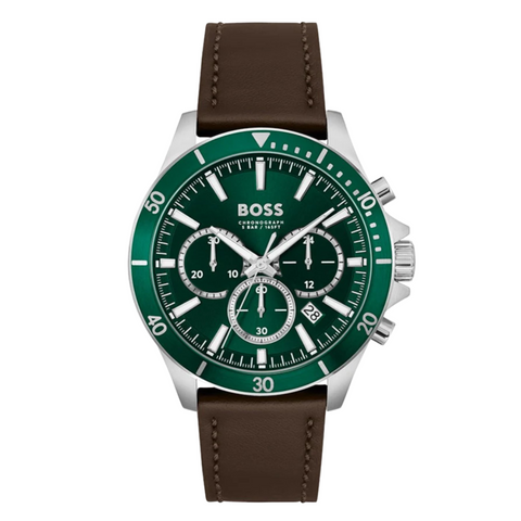 Add to WishlistHugo Boss Troper Brown Leather Strap Green Dial Chronograph Quartz Watch for Gents - 1514098
