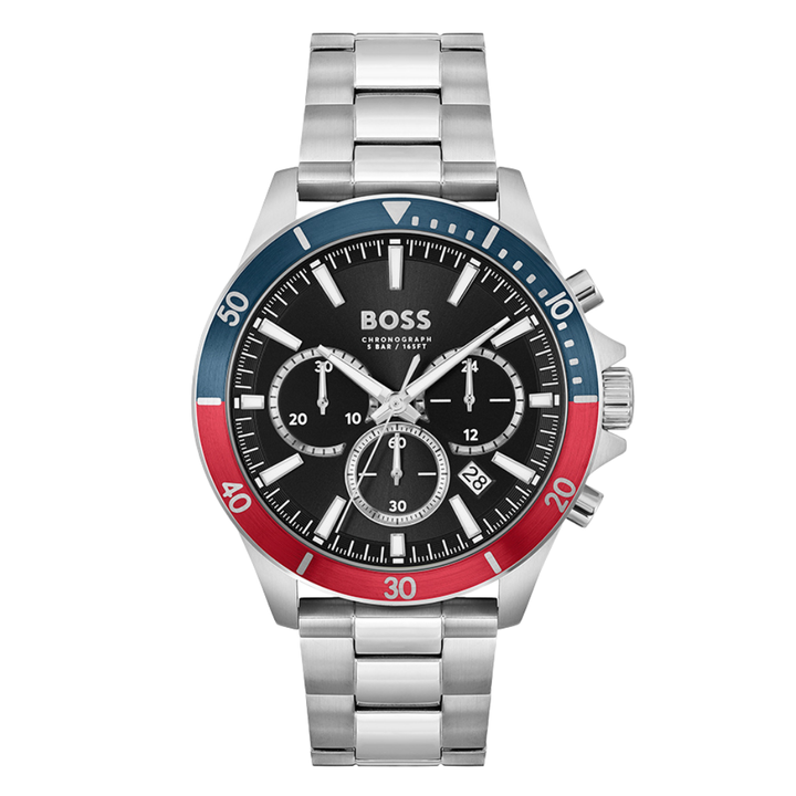 Hugo Boss Troper Silver Stainless Steel Black Dial Chronograph Quartz Watch for Gents - 1514108
