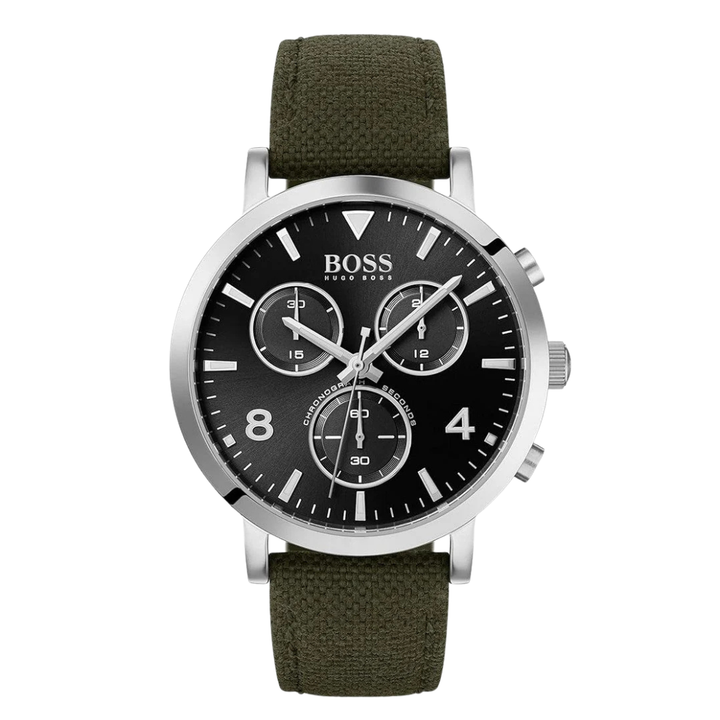 HUGO BOSS Vesada Green Nylon Strap Black Dial Quartz Watch for Gents- HUGO BOSS 1513692