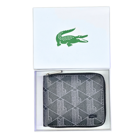 This Lacoste Zipped Monogram Bifold Wallet features a stylish monogram design.