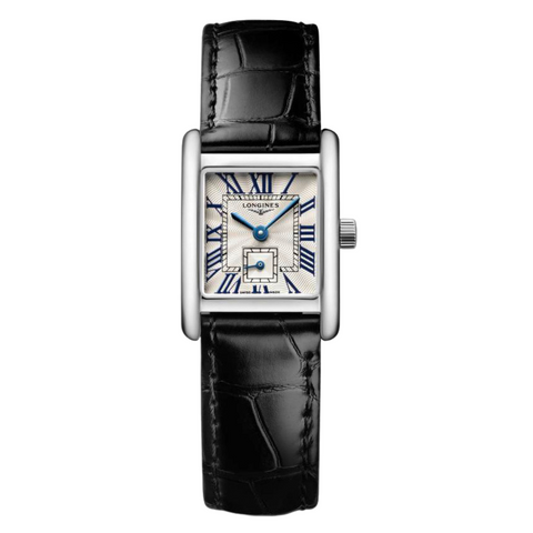 Longines Mini DolceVita Black Leather Strap Silver Dial Quartz Watch for Ladies - L5.200.4.71.2