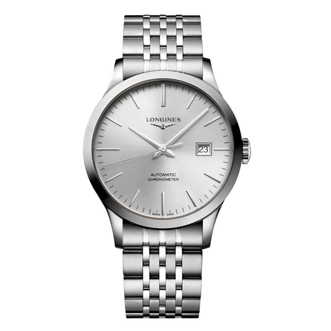 Longines Record Silver Stainless Steel Silver Dial Automatic Watch for Gents - L2.821.4.72.6