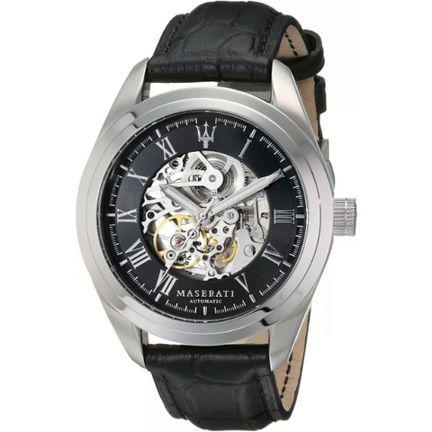 Maserati Traguardo Black Leather Strap Black Dial Automatic Watch for Gents - R88723140011