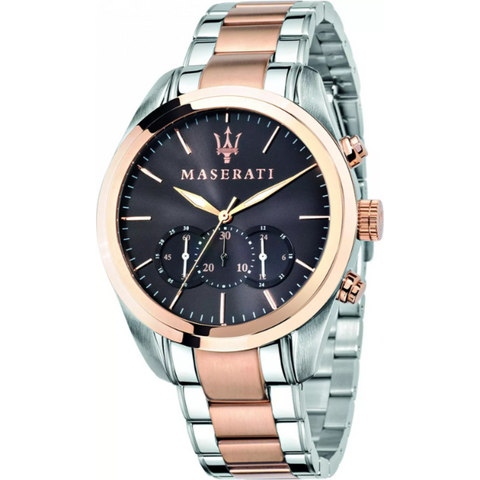 Maserati Traguardo Two-Tone Stainless Steel Black Dial Quartz Watch for Gents - R8873612003