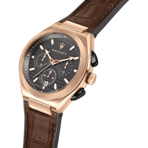 Maserati Triconic Brown Leather Strap Grey Dial Quartz Watch for Gents - R8871639003