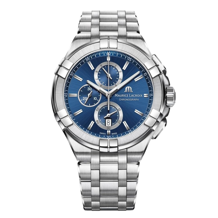 Maurice Lacroix Aikon Silver Stainless Steel Blue Dial Chronograph Quartz Watch for Gents - AI1018-SS002-430-1