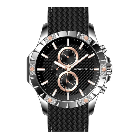 Michael Fellini Black Silicone Strap Black Dial Chronograph Quartz Watch for Gents - MF2365-02