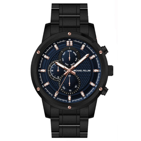 Michael Fellini Black Stainless Steel Blue Dial Chronograph Quartz Watch for Gents - MF-2348-04