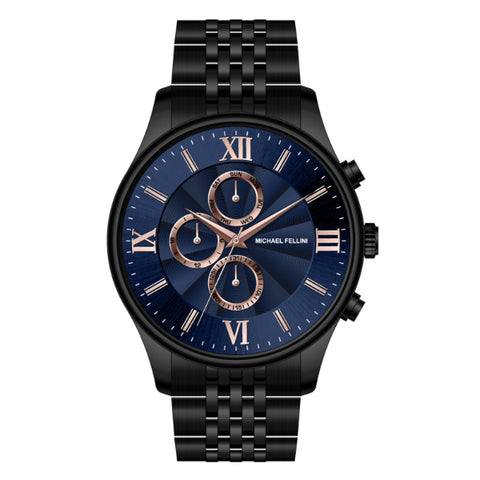 Michael Fellini Black Stainless Steel Blue Dial Chronograph Quartz Watch for Gents - MF-2349-04