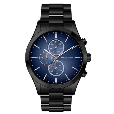 Michael Fellini Black Stainless Steel Blue Dial Chronograph Quartz Watch for Gents - MF-2351-04