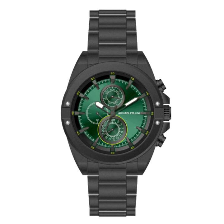 Michael Fellini Black Stainless Steel Green Dial Chronograph Quartz Watch for Gents - MF-2345-04