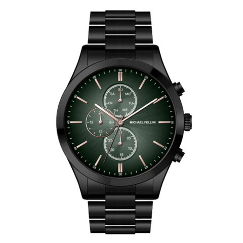 Michael Fellini Black Stainless Steel Green Dial Chronograph Quartz Watch for Gents - MF-2351-05
