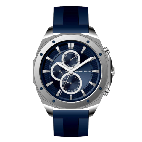 Michael Fellini Blue Silicone Strap Blue Dial Chronograph Quartz Watch for Gents - MF-2344-01