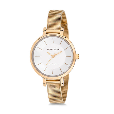 Add to WishlistMichael Fellini Gold Mesh Bracelet Silver Dial Quartz Watch for Ladies - MF2118-2