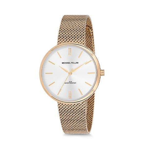 Add to WishlistMichael Fellini Gold Mesh Bracelet Silver Dial Quartz Watch for Ladies - MF2125-2