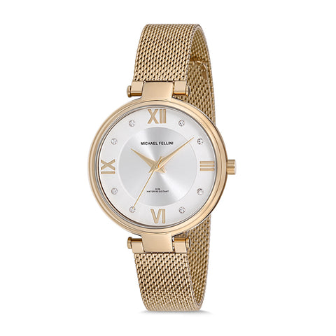 Add to WishlistMichael Fellini Gold Mesh Bracelet Silver Dial Quartz Watch for Ladies - MF2174-3