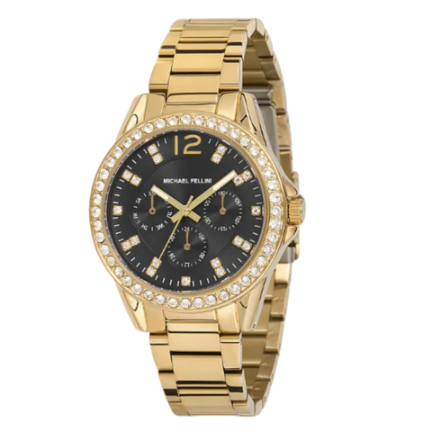 Michael Fellini Gold Stainless Steel Black Dial Quartz Watch for Ladies - MF2160-6
