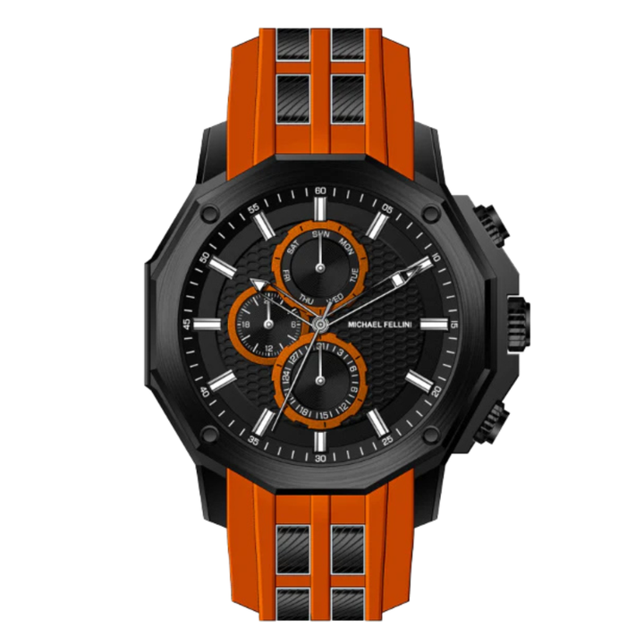 Michael Fellini Orange Silicone Strap Black Dial Chronograph Quartz Watch for Gents - MF-2346-05
