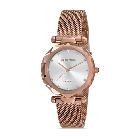 Add to WishlistMichael Fellini Rose Gold Mesh Bracelet Silver Dial Quartz Watch for Ladies - MF2257-3