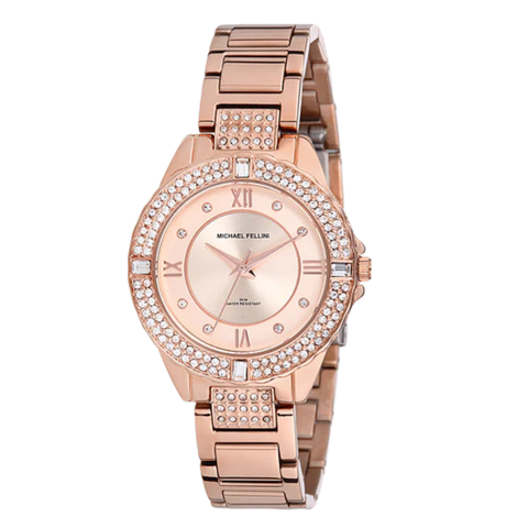 Michael Fellini Rose Gold Stainless Steel Rose Gold Dial Quartz Watch for Ladies - MF2189-3
