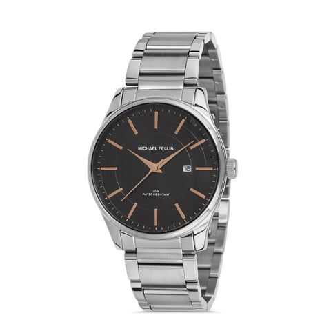 Michael Fellini Silver Stainless Steel Black Dial Quartz Watch for Gents - MF2274-4