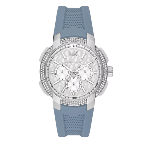 Michael Kors Blue Silicone Strap Silver Dial Chronograph Quartz Watch for Ladies - MK7220