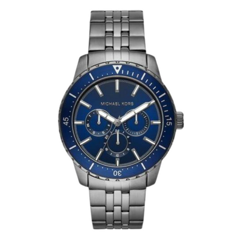 Michael Kors Cunningham Grey Stainless Steel Blue Dial Chronograph Quartz Watch for Gents - MK-7155
