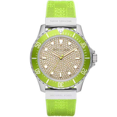 Michael Kors Everest Green Silicone Strap Pave, Rose Gold Dial Quartz Watch for Ladies - MK-7360