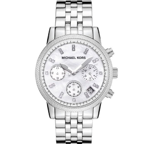 Add to WishlistMichael Kors Jet Set Silver Stainless Steel Mother of pearl Dial Chronograph Quartz Watch for Ladies - MK-5020
