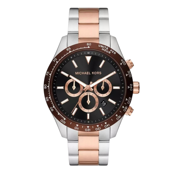 Add to WishlistMichael Kors Layton Two-tone Stainless Steel Black Dial Chronograph Quartz Watch for Gents - MK8913