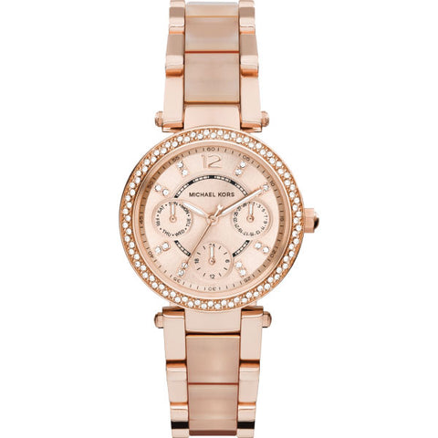 Add to WishlistMichael Kors Parker Rose Gold Stainless Steel Rose Gold Dial Quartz Watch for Ladies - MK-6110
