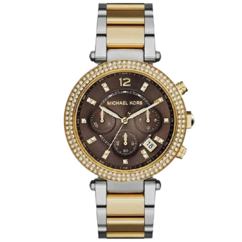 Michael Kors Parker Two-Tone Stainless Steel Brown Dial Chronograph Quartz Watch for Ladies - MK6118